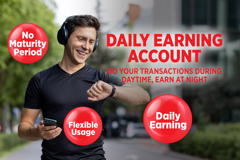 Enjoy the freedom of making daily purchases and payments with the Daily Earning Account, while your savings earn value every day!