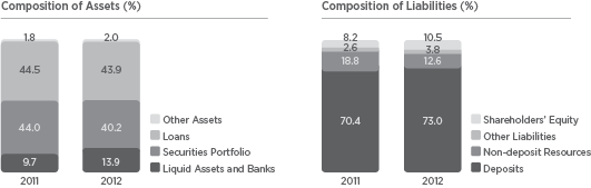 Within the frame of the strategy to switch from marketable securities to loans in its balance sheet, the Bank focused on lending activities. As a result of its activities, total lending amounted to TL 71.4 billion at the end of 2012, and accounted for 44% of assets. The share of marketable securities portfolio to assets declined from 44% in 2011 to 40%. Efforts will be ongoing also in the years coming to match the sector’s norms in terms of the share of marketable securities within the balance sheet. In 2012, the Bank’s NPL ratio rose to 2.8%. The NPL ratio that the Bank keeps equal to the sector’s average without disposing of any assets for its non-performing loans indicates that it has good assets quality.