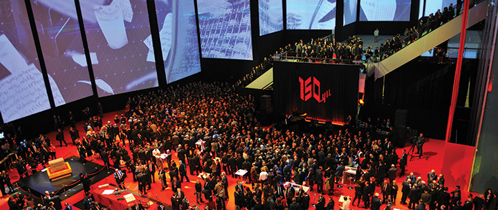 The reception took place at the Congresium International Convention & Exhibition Center in Ankara, whose exterior and foyer provided the backdrop for one of the most elaborate visual effects and video mapping shows ever staged in Turkey. Guests arriving at the reception encountered an image of Ziraat Bank’s original headquarters projected on the facade and they appeared to be passing through its doors as they entered the Congresium Foyer. Inside, guests were treated to a sound & light performance which used a video mapping system that perfectly matched the scale and resolution of the interior in order to provide an unforgettable experience as the establishment, development, changes, progress, and achievements of Ziraat Bank unfolded before their eyes.