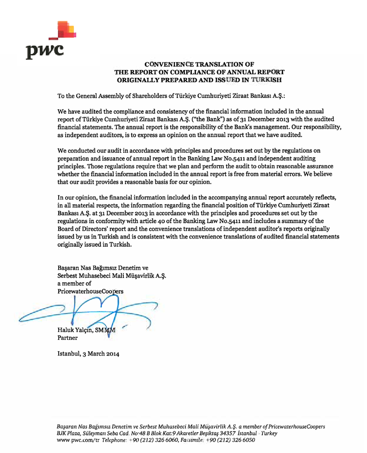 Publicly Announced Unconsolidated Financial Statements together with Independent Auditor's Report at 31 December 2013