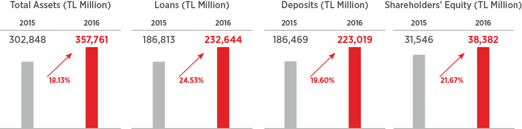 Ziraat Bank’s total assets amounted to TL 357.8 billion at the end of 2016, marking an increase of 18.1%, and its cash loans amounted to TL 232.6 billion, with 24.5% increase in YoY terms.
