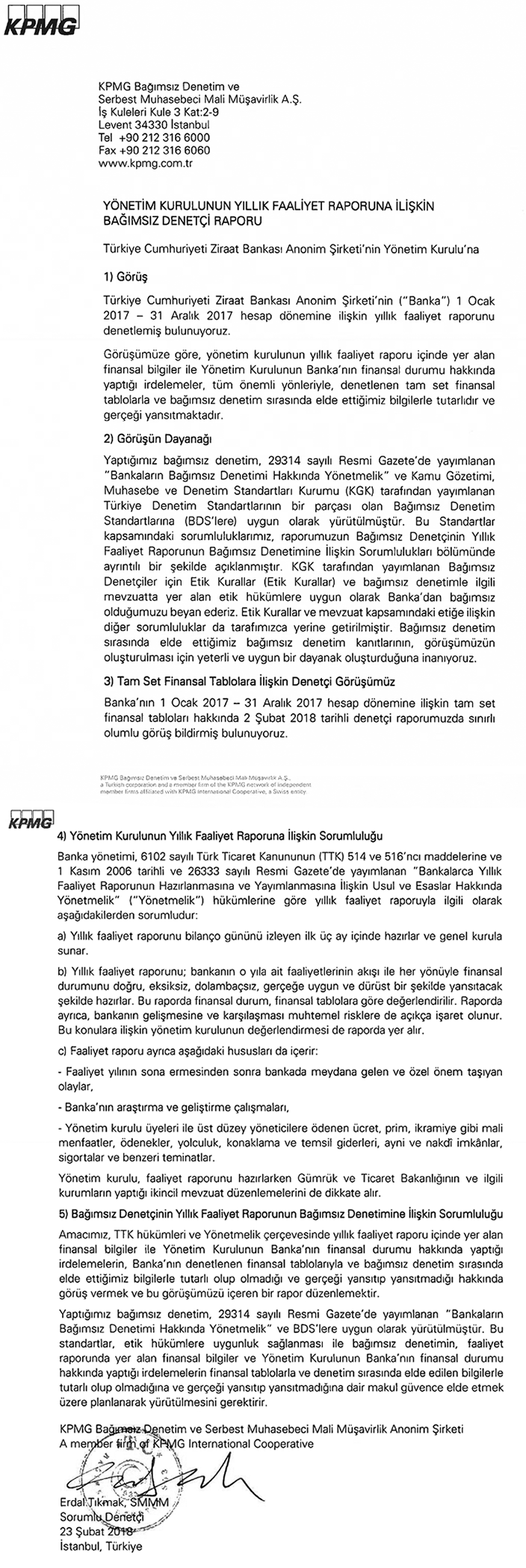 31 Aralık 2017 Tarihi İtibarıyla Hazırlanan Kamuya Açıklanacak Konsolide Olmayan Finansal Tablolar, Bunlara İlişkin Açıklama ve Dipnotlar ile Bağımsız Denetim Raporu