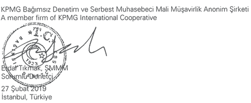 Banka’nın 1 Ocak 2018 - 31 Aralık 2018 hesap dönemine ilişkin tam set konsolide ve konsolide olmayan finansal tabloları hakkında 28 Şubat 2019 ve 12 Şubat 2019 tarihli denetçi raporlarımızda sınırlı olumlu görüş bildirmiş bulunuyoruz.