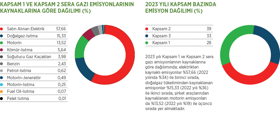 2023 sera gazı envanterine 2022 yılından farklı olarak satın alınan mal ve hizmetler, duran varlıklar, kaynak yönlü nakliye, ürün kullanımı ve ürünlerin yaşam sonu emisyonları da dâhil edilmiştir. Ziraat Bankası 2023 yılında Kapsam 1, 2 ve 3 emisyon ölçümlerini üçüncü taraf görüşü ile doğrulatmıştır.
